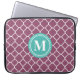 Monogram Aqua Blue Purple Quatrefoil Pattern Laptop Sleeve