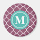 Monogram Aqua Blue Purple Quatrefoil Pattern Magnet