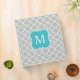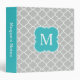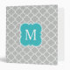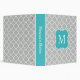 Monogram Aqua Green and Gray Quatrefoil Pattern Binder
