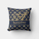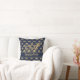 Monogram ART Deco Navy Blue Gold Shells Newlyweds Throw Pillow