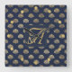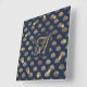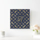 Monogram ART DECO Shells Navy Blue Gold Newlyweds Square Wall Clock