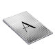 An elegant Art Deco geometric striped pattern in a silver / chrome satin gradient, with a slight, raised, 3-d effect and a customizable monogram in a Deco font