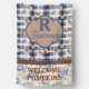 Celebrate the cozy charm of autumn with this beautifully designed house flag featuring classic pumpkins, a rustic plaid background, and your personalized monogram front and center.