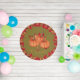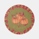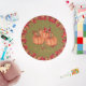 Dark Green: Autumn Orange Pumpkins Fall Leaves round exterior outdoor rug. Custom Family Name. Available in an indoor option