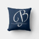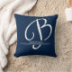 A monogram B throw pillow with your name in white on a blue background. Other popular monogram letters are also available in the collection. Simply add your name, add this pillow to your cart, and enjoy this piece of stylish decor in your home.
