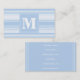 Monogram baby blue stripes business card