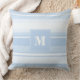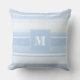 Monogram baby blue stripes throw pillow