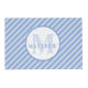 Personalized baby boy monogram placemat. Perfect baby shower or the first boy's birthday gift idea. Traditional pastel baby blue and white colour combo. Custom initial and name surrounded by the stars and stripes on the front side. Add the name and initial with easy to use Zazzle editing tool! Visit the shop to see all the collection. There are stickers, blankets, pillows, baby bibs and so much more available.