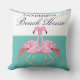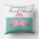 Monogram Beach House Teal navy blue Flamingos Throw Pillow,