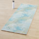 A yoga mat featuring a grunge beach pattern in pale turquoise and green off-white colors with your custom monogram (optional).