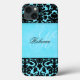 Monogrammed modern black and aqua blue damask pattern Case-Mate Barely There™ iPad Air case can be customized with your logo, name, initial, or other text. If you need assistance, email niteowlstudio@gmail.com.