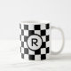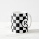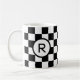 Add your monogram initial in the sidebar to personalize the bold black and white checkered pattern made of rows of alternating white and black squares.