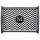 Customizable Serving Tray with Black and White Zigzag pattern. Change monogram to your own. Initial framed in Black circle with White pinstripe