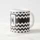 A stylish Jumbo Coffee or Soup Mug for you to personalize, with a pattern of trending Black and White zigzags or chevrons. If you prefer the mug without the inittal, you can easily customize it by deleting the text and moving the chevron pattern upwards until the plain text area disappears.