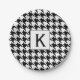 Monogram Black and White Houndstooth Pattetrn Paper Plates