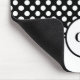 Monogrammed black and white polka dot patterned mouse pad.