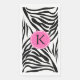 Monogrammed black and white zebra pattern. A hot pink circle where you can put your initial.