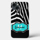 Monogrammed modern black, white and aqua blue zebra print striped pattern Case-Mate Barely There™ iPad Air case can be customized with your logo, name, initials, or other text. If you need assistance, email niteowlstudio@gmail.com.