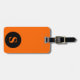 Luggage tag with orange monogram on a black circle on an orange background. Personalize with your monogram initial, name, and address information using the easy templates. Font color, font style, and font size are customizable.