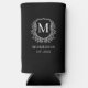 Monogram Black Crest Modern Botanical Wedding Seltzer Can Cooler