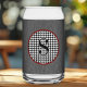 Popular can glass is an ideal gift for any occasion or treat yourself. This 16oz drinking glass resembles a classic beverage can design. Full black denim wrap with circle houndstooth frame with deep red border and stylish black outlined initial. Easily change Initial, or replace with two numbers, to make it yours using the Template provided. Made in the USA. See "About This Product" at side for more information. ===>Hand wash only.<=== Use "Design Tool" to change dark red color.