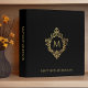 An elegant black and gold design with the monogram initial in a vintage crest. The crest is faux gold foil, the background is black. In the lower part, there is the name in small golden caps. The name is also written on the spine.