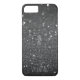 A chic, elegant black glitter background with sparkles is the backdrop for this iPhone case. Add your monogram and name to it for personalization.