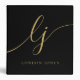 Monogram Black Gold Calligraphy Script 2 Initials 3 ring binder