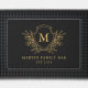 Home bar personalized surname black and gold bar mat features an elegant gold crest with a simple monogram on an editable black color background. This classic bar mat includes your custom est year.