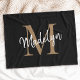 Monogram Black Gold Elegant Feminine Chic Script Fleece Blanket. Easily personalize this modern elegant fleece blanket with your custom monogram and name.
