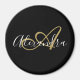 Monogram Black Gold Elegant Script Name Magnet