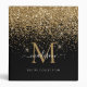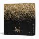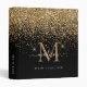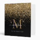 Monogram Black Gold Glitter Script Name Recipe 3 Ring Binder