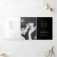 Monogram black gold leaf wedding meal option RSVP Tri-Fold Invitation
