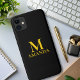 This sleek and sophisticated design features a stunning black background with luxurious gold accents, perfect for a modern and elegant look. Easily personalize this iPhone case by adding your name and initials. You can also modify the black background color and text to match your unique style. Ideal for those who appreciate minimalistic elegance with a touch of personalization,
