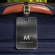 A stylish modern monogrammed luggage tag to help identify your belongings. Great for attaching to your luggage, laptop bag, golf bag, carry-on, and backpack. This product also makes a lovely gift for Father's Day, birthdays, graduations, weddings, and more. Please note, metallic details are simulated.
