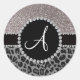 Monogram black leopard silver glitter classic round sticker