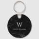 Monogram Black Marble Modern White Initial Name Keychain
