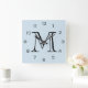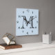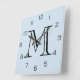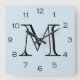 Monogram Black Numbers On Light Blue wccnt Square Wall Clock