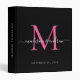 Elegant Monogram Pink Magenta Black White Script Name Wedding Memories Photo Album Story 3 ring binder