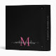 Monogram Black Pink Magenta Script Wedding Album 3 Ring Binder
