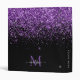 Monogram Black Purple Glitter Script Name Recipe 3 Ring Binder