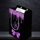 A favor bag for a girly and glamorous birthday party, bridal shower og baby shower. Black background decorated with purple faux glitter drips, paint dripping look and a bow. With the text: Thank You! Personalize and add your name. The name is written with a trendy hand lettered style script with swashes.