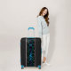 Monogram Black Rainbow Music Note Pattern Luggage. A rainbow gradient pattern of musical notes and clefs on black, with aqua or turquoise blue trimmings and a matching treble clef. Fill in your initial at the prompt to personalize and customize anyway you like. The perfect bag for the traveling musician or music lover.
