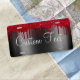 Monogram Black Red Metallic Faux Glitter Drips License Plate