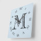 Monogram Black Roman Numbers On Pale Blue wccnt Square Wall Clock