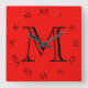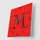 Monogram Black Roman Numbers On Red wccn Square Wall Clock