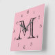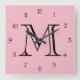 Monogram Black Script Numbers On Pink wccnt Square Wall Clock