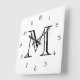 Monogram Black Script Numbers On White wccnt Square Wall Clock