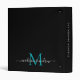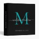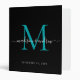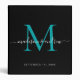 Monogram Black Teal Green Script Wedding Album 3 Ring Binder