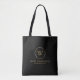 Monogram Black Tote Bag. Professional design, with gold monogram circle border around your initial, your name and professional title below. Use Zazzle's customization tools to create a stunning and professional product using your initial, business title, name, or your text. We invite you to visit our Zazzle store, Simon & Grace, for more professional and stylish products created to suit your needs.